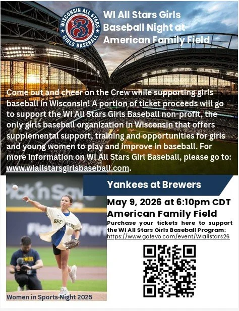 Come out and cheer on the Crew while supporting girls baseball in Wisconsin! A portion of ticket proceeds will support Wisconsin All Stars Girls Baseball